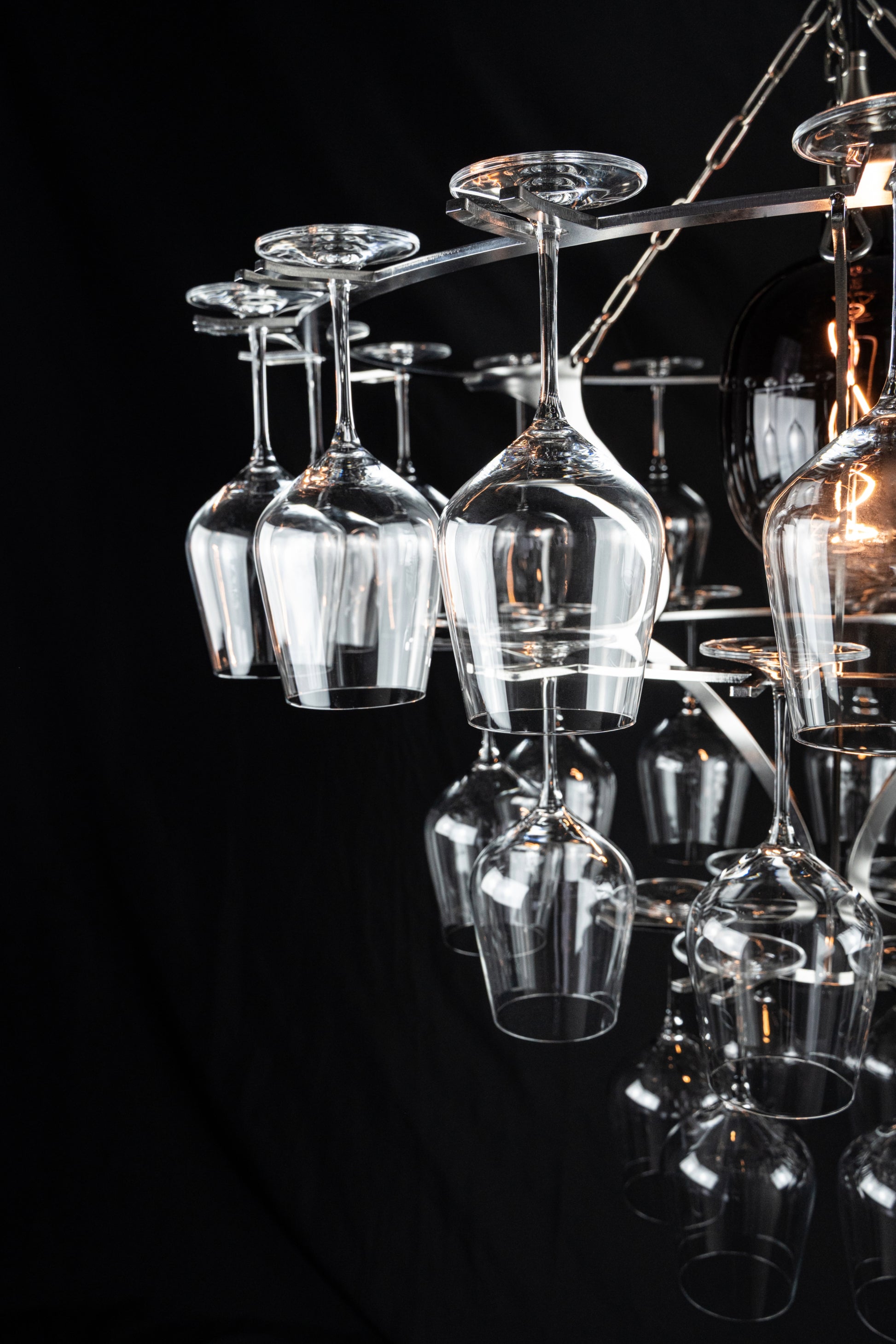Die Vino e Luce ist eine exklusive Pendelleuchte für den Innenbereich, die stilvolle Beleuchtung mit praktischer Weinglasaufbewahrung auf außergewöhnliche Weise vereint. Sie ist absoluten Blickfang in jedem Raum – und damit weit mehr als nur eine Lichtquelle.